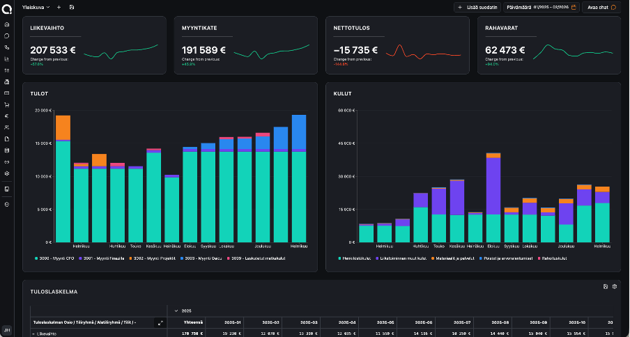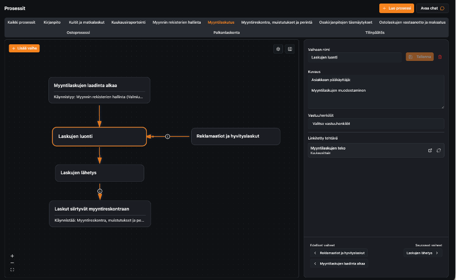Qaicun virtuaalinen CFO tukee tilitoimistoa esiasetettujen prosessien avulla, joita tilitoimisto voi räätälöidä asiakastarpeisiin.