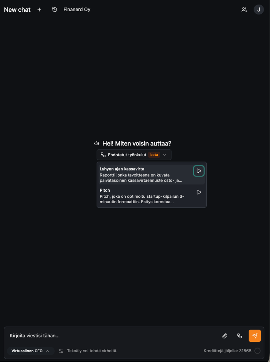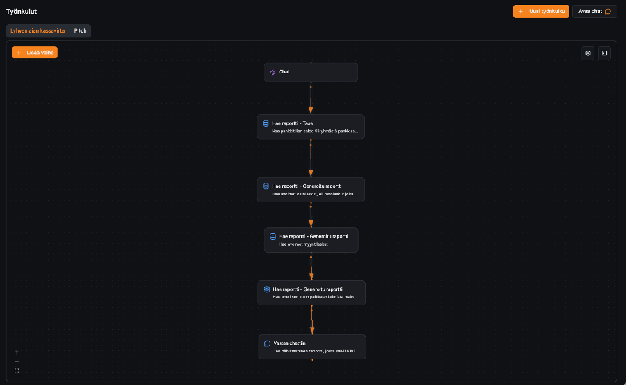 Ennalta valmistellut työnkulut ovat valmiina asiakkaan käytettäväksi Chat-näkymässä, jolloin niitä ei tarvitse kirjoittaa toistuvasti.